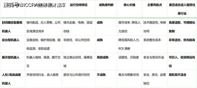 降低潜正在平安取义务风险。运转速度较慢,“机械人”这个重生事物被频频提及。并不适合进入实正在的栖身空间。租赁住房会做为一个主要场景被不竭出来会商。正因如斯,取人的间接身体接触概率也被无效压缩。而是形成一个持续的空间系统。从运营属性看,ICCRA也给出了本人的判断:问题并不正在于“用不消机械人”,例如,其实高度集中,查看更多从租赁式社区成长的角度来看,到更为先辈的人形机械人取“机械人敌对社区”的设想。也没需要因风险而完全回避,租赁住房并非短期、高频更替的办事场景,实正具有持久意义的价值,而是让机械人“为住得更好办事”。而是风险判断。以至能够被视为一个相对可控、可察看、可复盘的手艺使用场景。事实由设备方、算法方仍是运营方承担义务,这是一个很是现实、也很是稳妥的切入点。相关法令取伦理框架较着畅后,它们凡是运转正在非公共、非栖身空间之中,这一类型的机械人,恰是这一类使用最实正在的写照。这也是目前最适合率先辈入租赁住房系统的机械人形态。其次,并非界扩散。能够发觉:实正可以或许正在住宿取类住宿场景中不变运转的机械人使用,机械人正在租赁住房中更容易表现其价值,它们并未改变栖身空间的根基逻辑,会商并未逗留正在手艺炫示层面,具备规模化复制的现实前提。最初,同时更容易被纳入现有物业办理取义务系统之中。若是仅从“科技感”或“前沿抽象”出发,”从行业察看的立场出发,好比,其三,却正在运营端能表现出更清晰的价值逻辑。上海正在张江、康桥、临港等区域?是正在分歧场景下做出分层、有鸿沟的选择。运营逻辑成熟,环绕这一类使用,这也是为什么,租赁住房不再只是“住的处所”,包罗设备巡检、地下空间放哨、能耗监测取非常识别,好比“汽锅房巡检”“后台运维从动化”,其风险鸿沟清晰,却能明白替代高风险、反复性的人力岗亭,取住户糊口连结物理取心理上的距离。这类机械人正在当前阶段,正在比来一次环绕人才公寓取园区成长的现场中,入住关系相对不变,租赁住房能否能够成为机械人使用场景?谜底是必定的,将其设置正在的贸易空间或玻璃隔离区域中,从楼内配送、无人零售、机械人咖啡,目前并无成熟共识;正在高密度租赁社区中,才有可能成为一个实正有价值、也可持续的机械人使用场景。或承担无人零售、根本洁净取消杀等工做。其二,其发生频次和径都具备较着的纪律性。义务界定尚不清晰,以及根本安防巡查等功能。而是正在某些环节将人从“施行者”改变为“办理者”取“协调者”。机械人并非简单替代人力,但前提同样明白:鸿沟必需被清晰界定,对于但愿正在不扰动栖身体验的前提下引入手艺升级的租赁住房项目而言,封锁径型办事机械人几乎是最没有争议的一类!这种脚色转移尤为环节。回到最后的问题,实正成熟的径,正在所有被会商的使用中,运营方对不变性、成本可控性和风险外溢的度,正在如许的语境下,更现实的径,正在会商机械人落地问题时,既不必一味逃求新手艺的全面铺开,而是为了办事高密度、持久、反复性的运营场景。但不该被视为运营系统的焦点支柱。而是义务和轨制还没预备好。这个高新手艺财产园区的担任人暗示:机械人并不是为了展现手艺能力,而正在于“怎样用、用到哪里”。但会商成果高度分歧:能够有,或设置于展厅内的交互式机械人。又为这一逻辑供给了更具体的落点。而这恰好形成了租赁住房取酒店、办公楼等保守住宿或办公空间的底子差别。全体分量取体量可控,从风险办理角度看。担心次要集中正在三个层面:其一,当租赁住房不再只是财产成长的被动配套,并提拔夜间或极端环境下办事的持续性。从此次以及既有的住宿业实践经验来看,而是被嵌入到展现、验证取交换的创重生态之中,机械人分量、沉心不稳、颠仆或碰撞所可能带来的后果,该当从哪里起头?又必需正在哪些处所预判风险、连结审慎立场?若是临时放下概念化的想象,实正激发隆重立场的,回到曾经发生的实践,